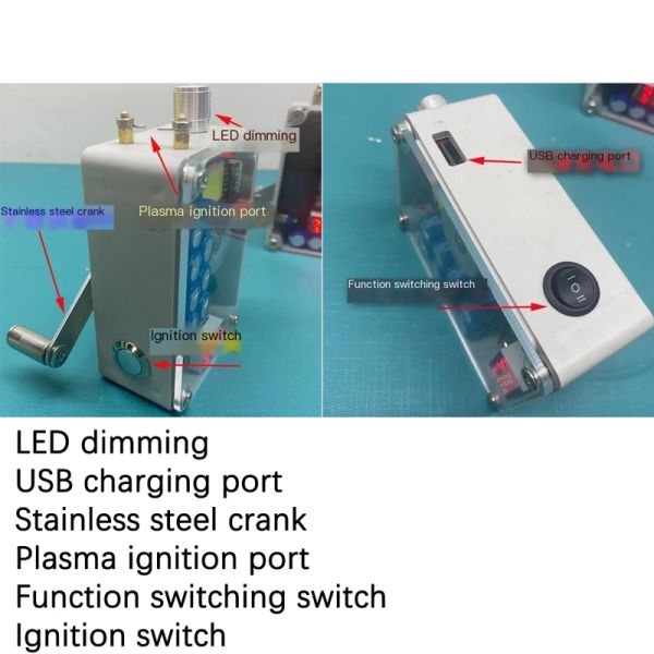 Plasma ignition, hand-cranked igniter, arc lighter can be ignited dozens of times by hand-cranking for 2 minutes.
